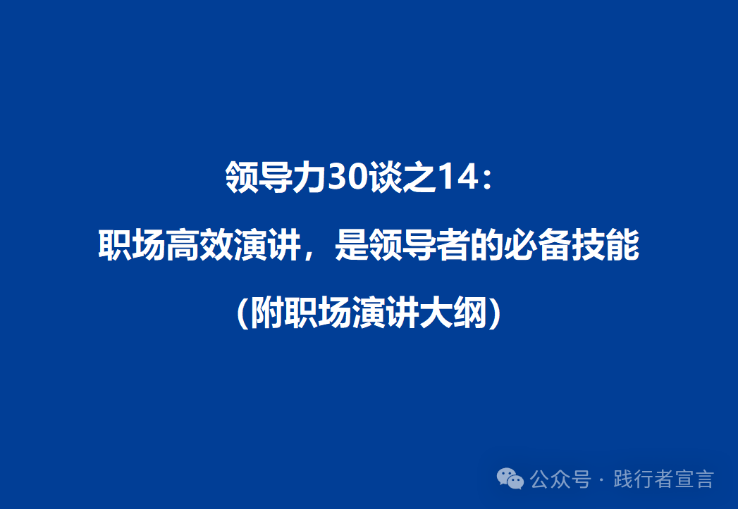 领导力30谈之14:职场高效演讲,是领导者的必备技能(附职场演讲大纲)