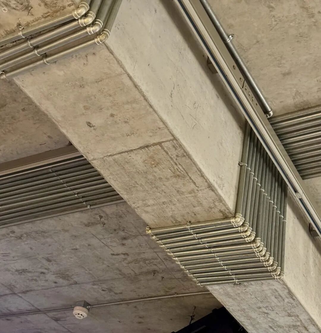 9厂:2000平,两层商业,主打夜生活,夜经济,酒吧、bistro酒馆类业态为主,更强调开放融合的社交场景,一进门的电子屏装置艺术的呈现,以及裸顶的室内设计,让这个主题区显得很特别。