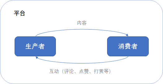 - 消费者:消费内容,并与生产者进行互动(点赞、评论、打赏等)。